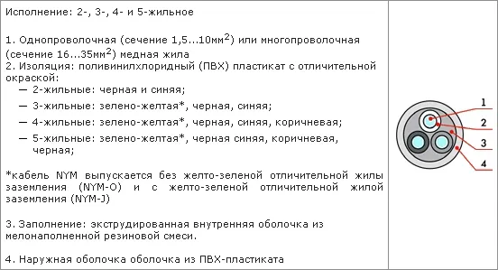 Покупая NYM, обращайте внимание на сопроводительную документацию: ОКП 352 122 (соответствие стандарту Deutsch VDE 088253). В нашей стране этот тип кабеля изготавливают на специализированных предприятиях по ГОСТ 16442-80 и ГОСТ 12.2.00714-75.